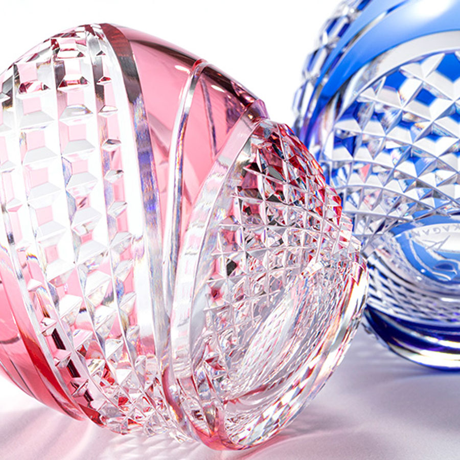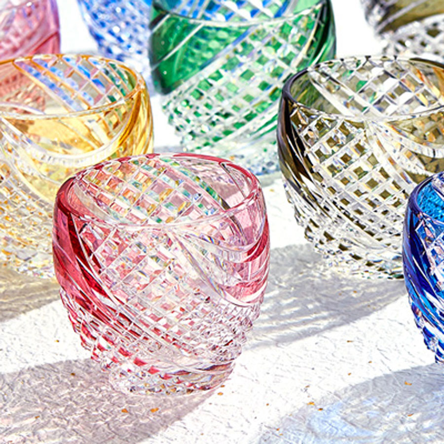 色被せクリスタルガラスに、江戸切子伝統文様の「魚子流し(ななこながし)」を施しました。