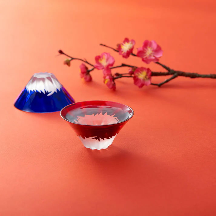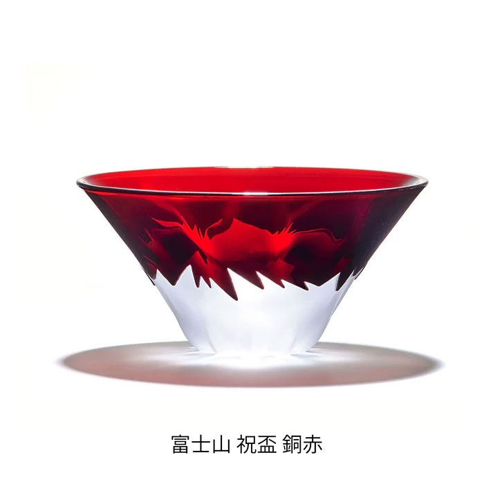 盃を伏せると雪を頂く、赤富士、青富士が現れる独創的な祝盃です。